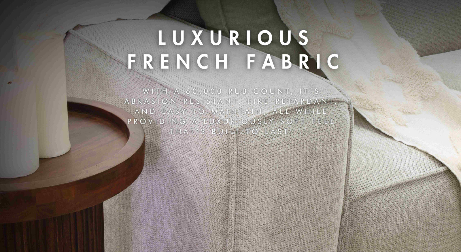 Inspired by French craftsmanship that is designed to invite touch, whether it’s the supple grain of our genuine leather couches or the smooth, refined texture of our high-quality fabric.