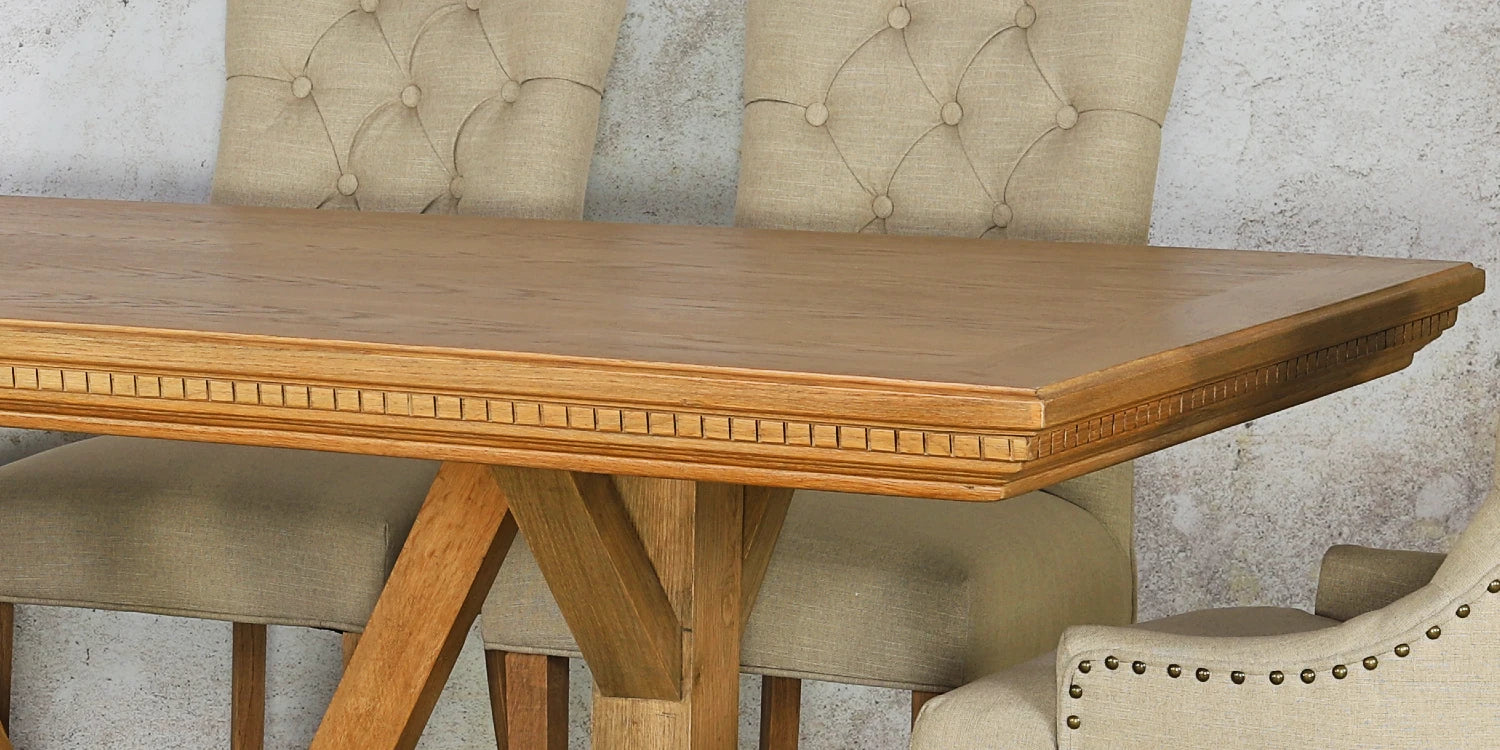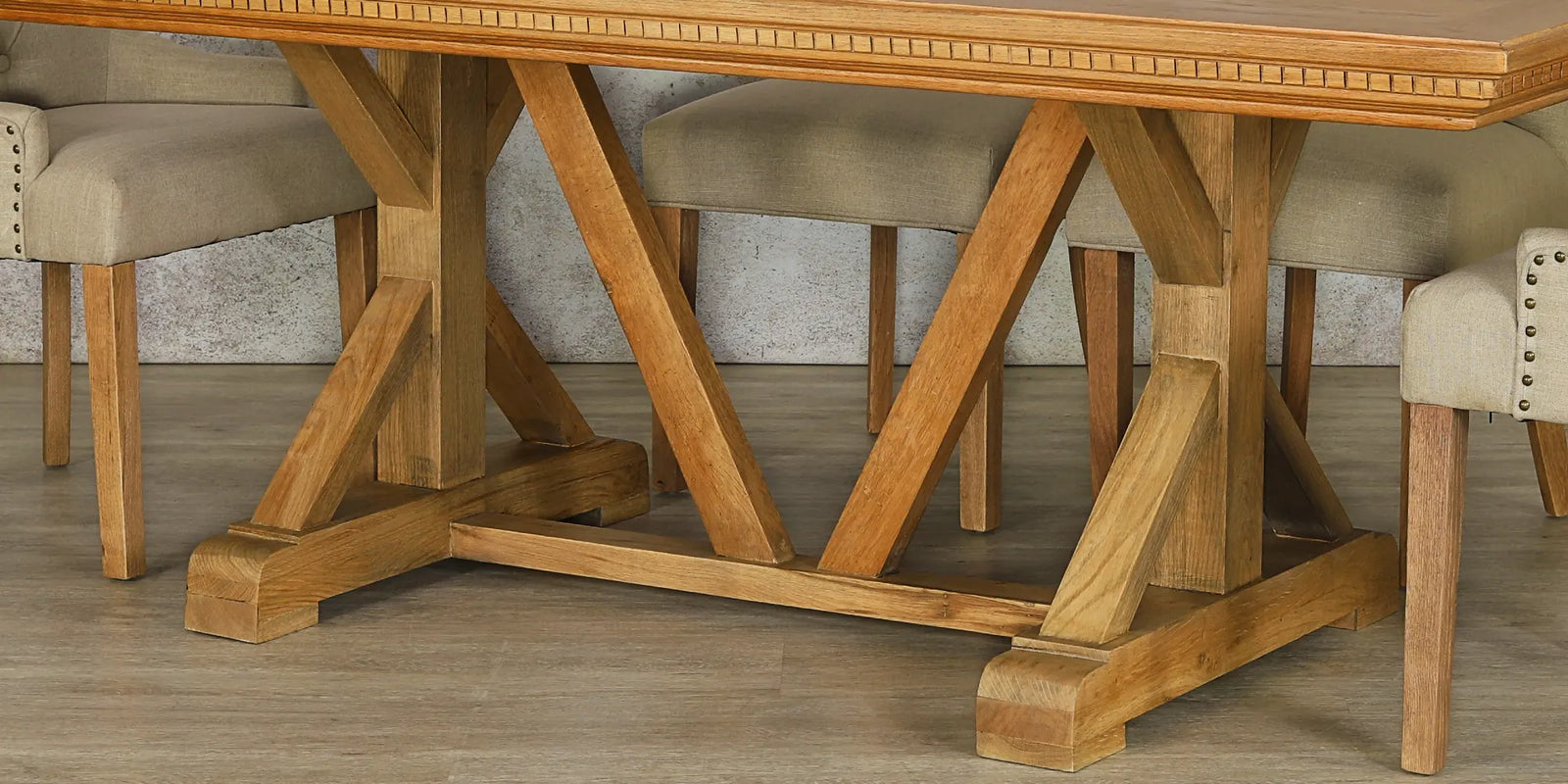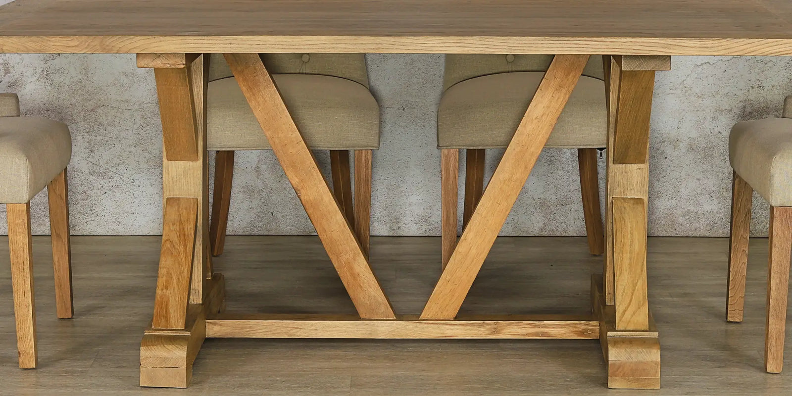 The Berkeley dining table features an X base, this refers to the X shaped legs that it showcases. The X base adds greater stability to this dining table and allows for more legroom when seated at the table. This base is crafted from solid Oak wood.