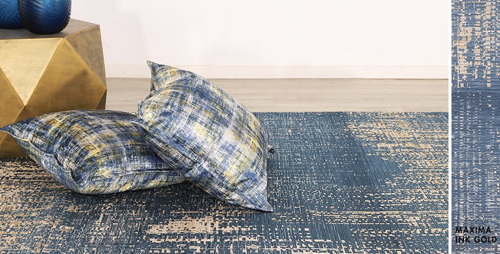 Introducing the Maxima Ink Gold Rug – a luxurious blue rug that brings elegance and warmth to any room.