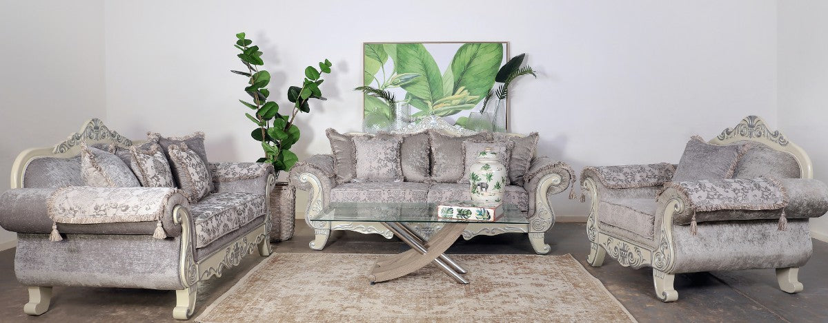 Intricately crafted, the Chanelle Fabric Sofa features an ornate frame that instantly captivates the attention of all. Upholstered in a rich, luxurious material that features a unique Chanelle Jacquard pattern, the Chanelle... Fabric 3-Seater Sofa is a picture of class and beauty.