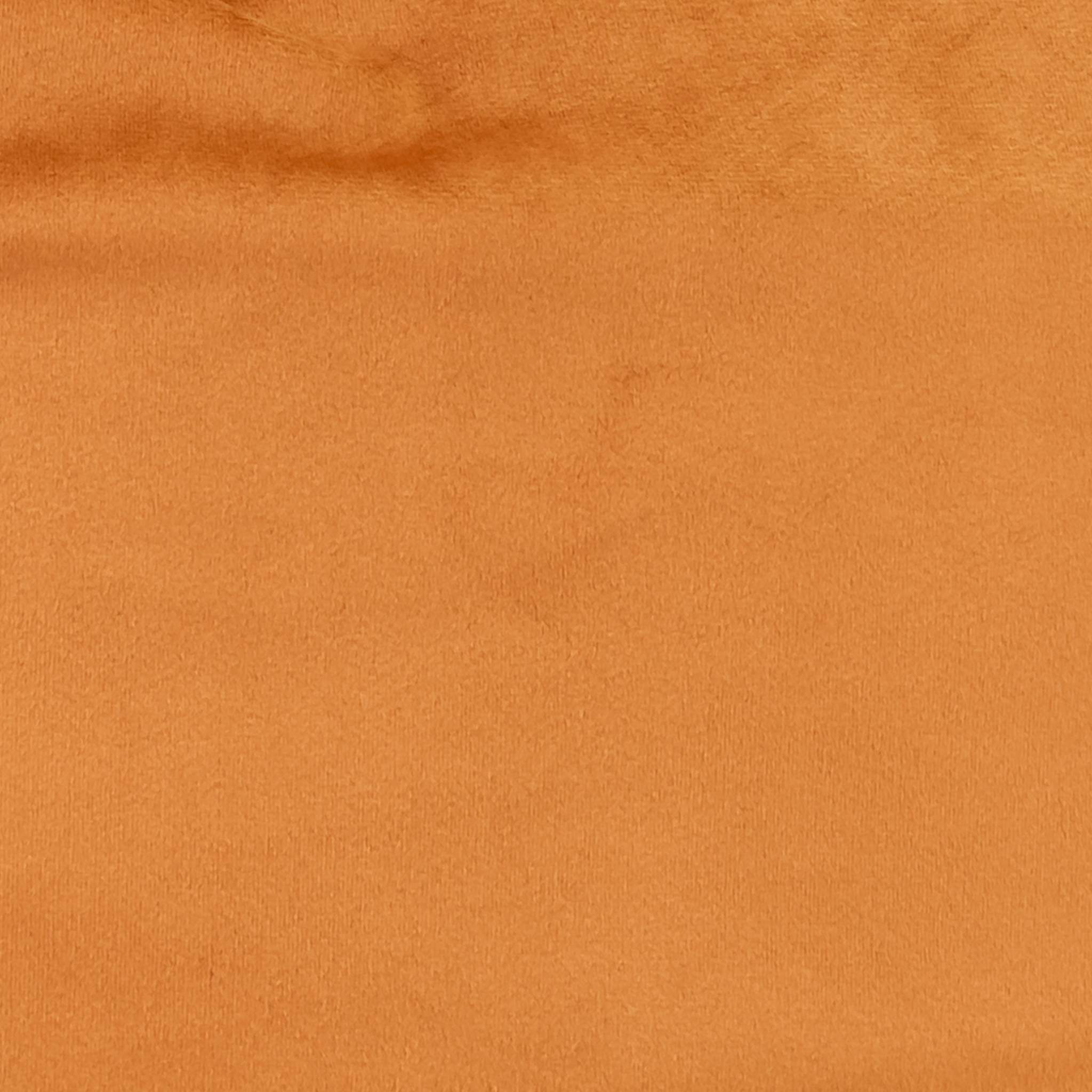 Its velvety burnt-orange fabric, reminiscent of terracotta, adds a cosy, inviting touch to any interior. The square shape and sharp-edge finish give it a sleek, modern appearance, while the hidden colour-matched zipper preserves the seamless look.