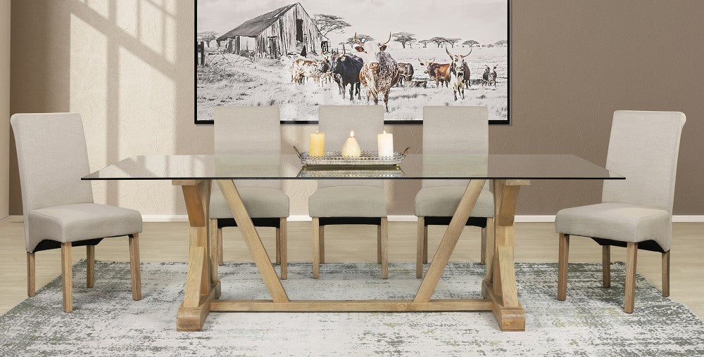 The Berkeley Glass 6-Seater Dining Table is the perfect dining room table for smaller dining rooms and for those that love to host smaller intimate family dinners. The sturdy wooden base and the clear glass top are the perfect contrasting elements that make this the perfect dining room table for dining rooms of varying interior styles.