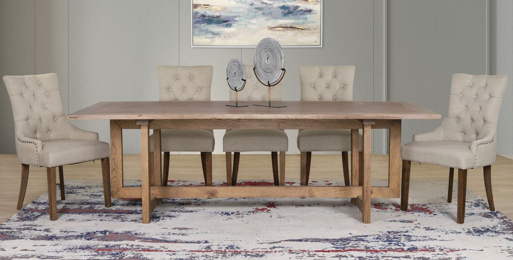 "The Bolton dining table is available with a classic rectangular wooden top that has been crafted with Oak wood."