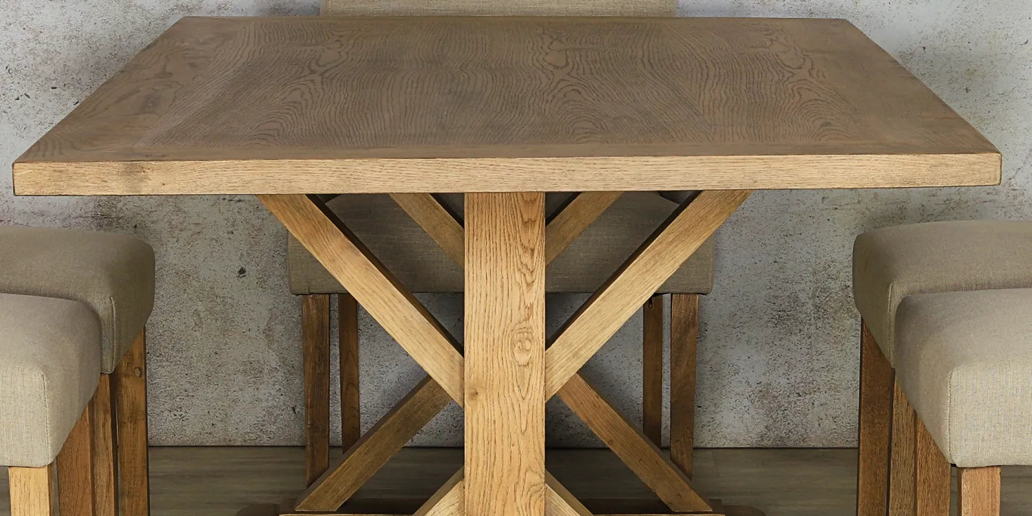 The Berkeley dining table features an X base, this refers to the X shaped legs that it showcases. The X base adds greater stability to this dining table and allows for more legroom when seated at the table. This base is crafted from solid Oak wood.