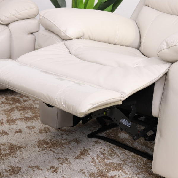 The Leggett and Platt Incliner Mechanism used in the Geneva leather recliner suite enables you to easily slide the recliner forward and release the foot rest with a simple pull of the lever that is located on the side of the recliner.