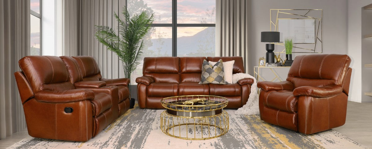 The Senora Leather Home Theatre Suite is generously padded and the genuine top grain leather is soft and supple, making it the perfect place to retreat to, to enjoy some quiet time. The three-seater, two-seater and one-seater recliners allow your entire family to enjoy one complete conversational area that is exceptionally comfortable and stylish. The Senora two-seater has an extra feature of a home theatre console and two cup holders. The home theatre console creates an additional armrest as well as provides storage space.