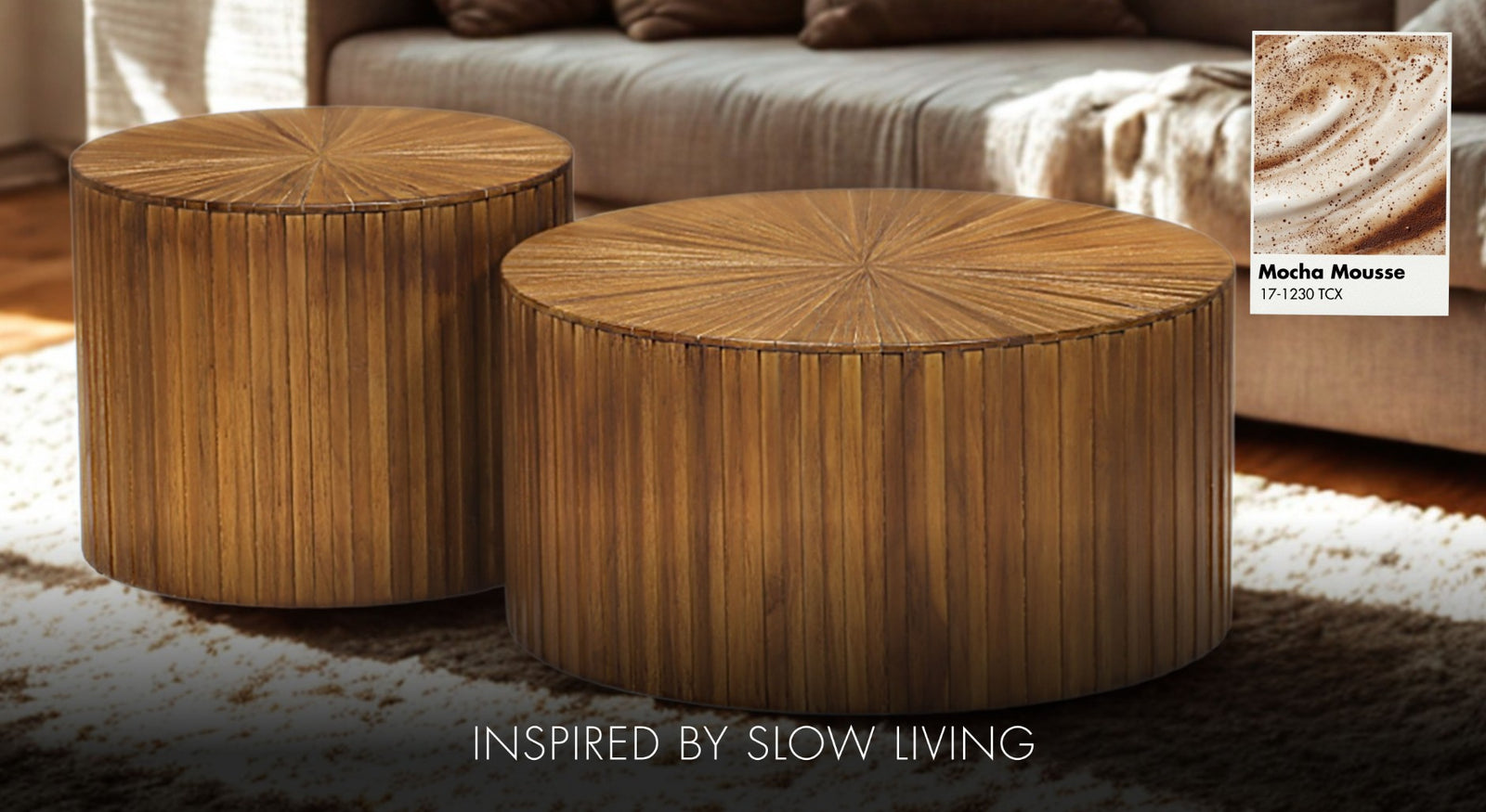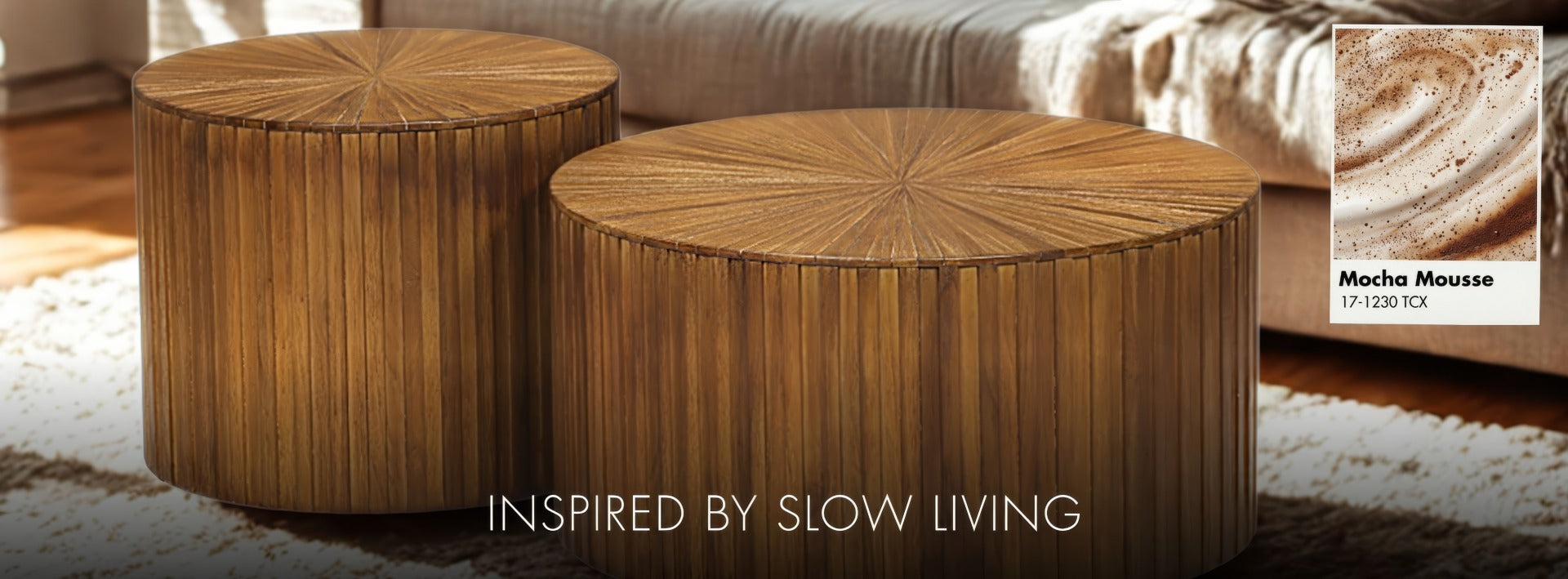 Rich browns and warm, natural shades, inspired by Mocha Mousse, the 2025 Colour of the Year. The hues reflect the natural rhythm of light, texture, and luxury.