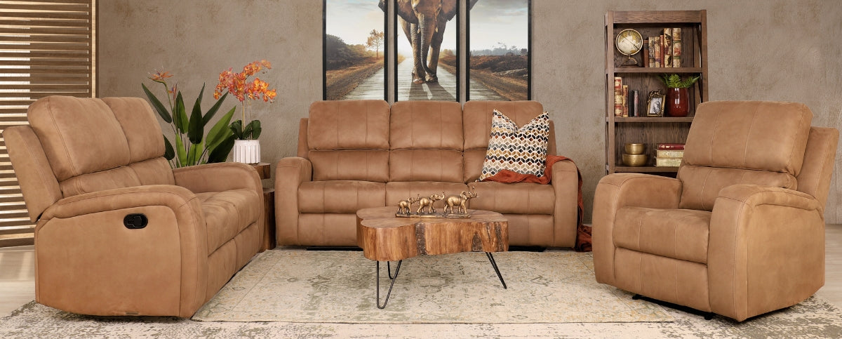The Orlando Fabric Recliner Suite is available in a gorgeous Desert Sand colour and takes inspiration from classic, traditional styling with its simple design and finishes. The soft fabric creates a warm and inviting seating area that will impress your family and friends. Featuring slightly angled armrests and generously padded headrests, seats, and leg rests, the Orlando Fabric Recliner Suite 3+2+1 provides you with the much-needed support and stability.