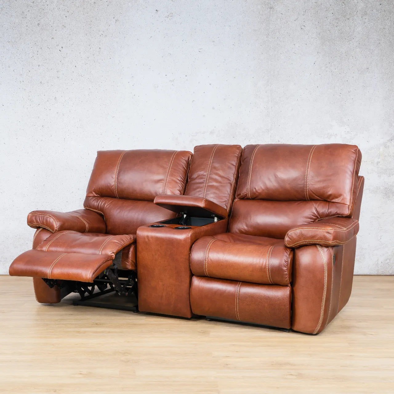 The Senora Leather Home Theatre Suite is generously padded and the genuine top grain leather is soft and supple, making it the perfect place to retreat to, to enjoy some quiet time. The three-seater, two-seater and one-seater recliners allow your entire family to enjoy one complete conversational area that is exceptionally comfortable and stylish. The Senora two-seater has an extra feature of a home theatre console and two cup holders. The home theatre console creates an additional armrest as well as provides storage space.