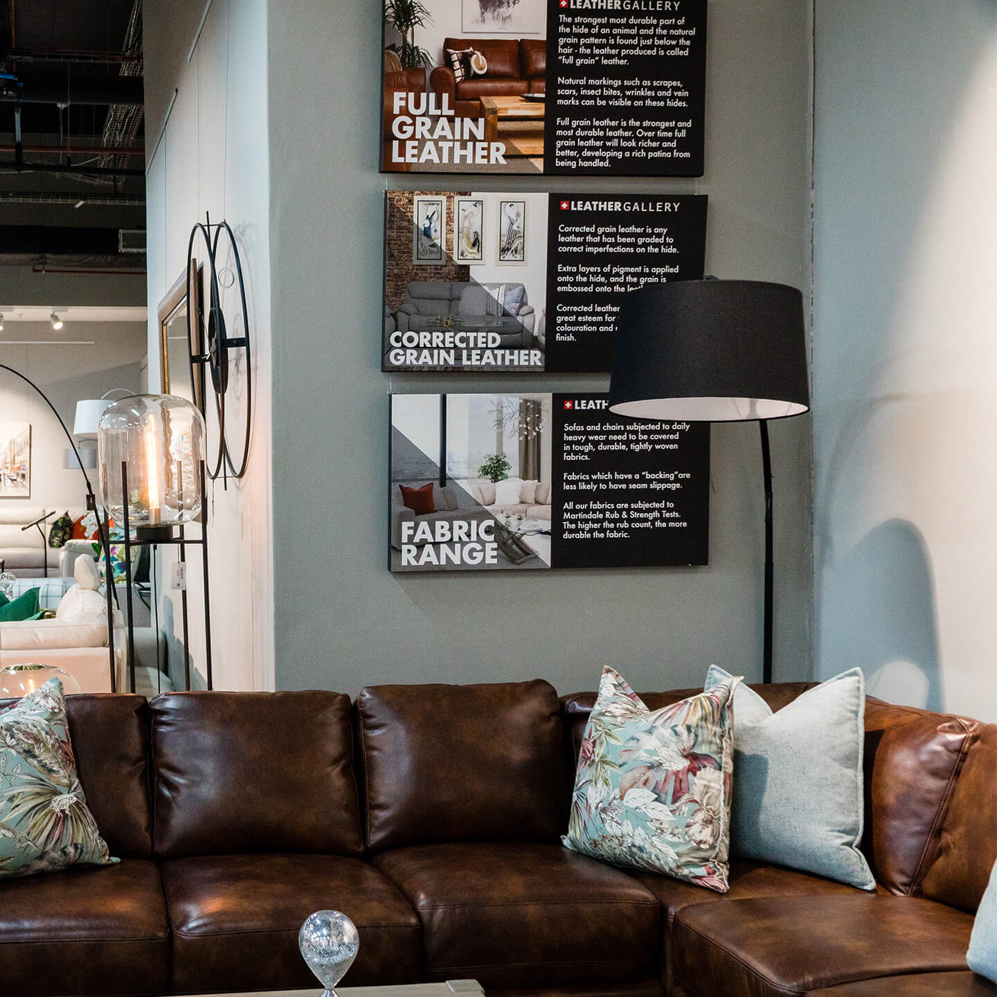 Our Leather Gallery stores are the epitome of luxury and class. Featuring sleek white marble floors and a bright, open atmosphere,our customers feel a sense of calmness when entering our stores. Experience the beauty and comfort of our wide collection of home furniture and décor when browsing through our stores. Our friendly sales assistants are well-informed of the current trends in design and styling, and can assist you in finding the perfect furniture pieces to complete your home.