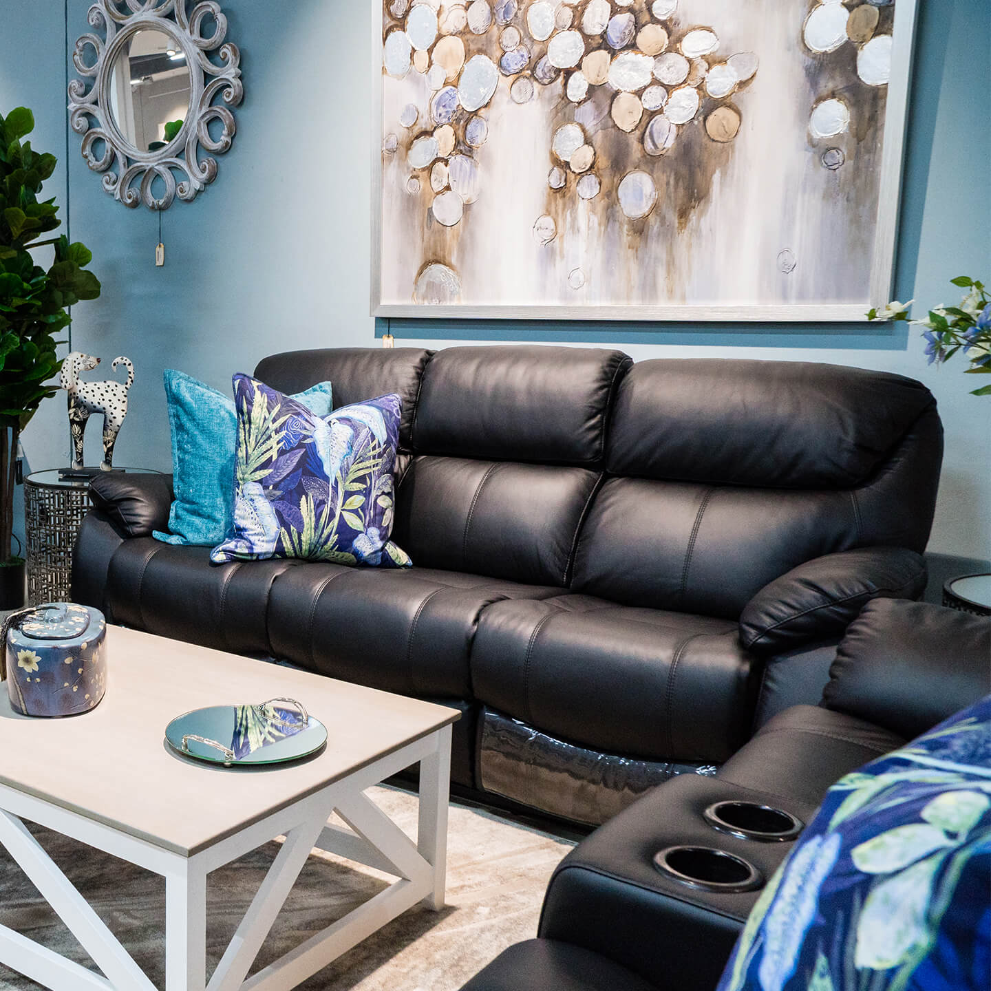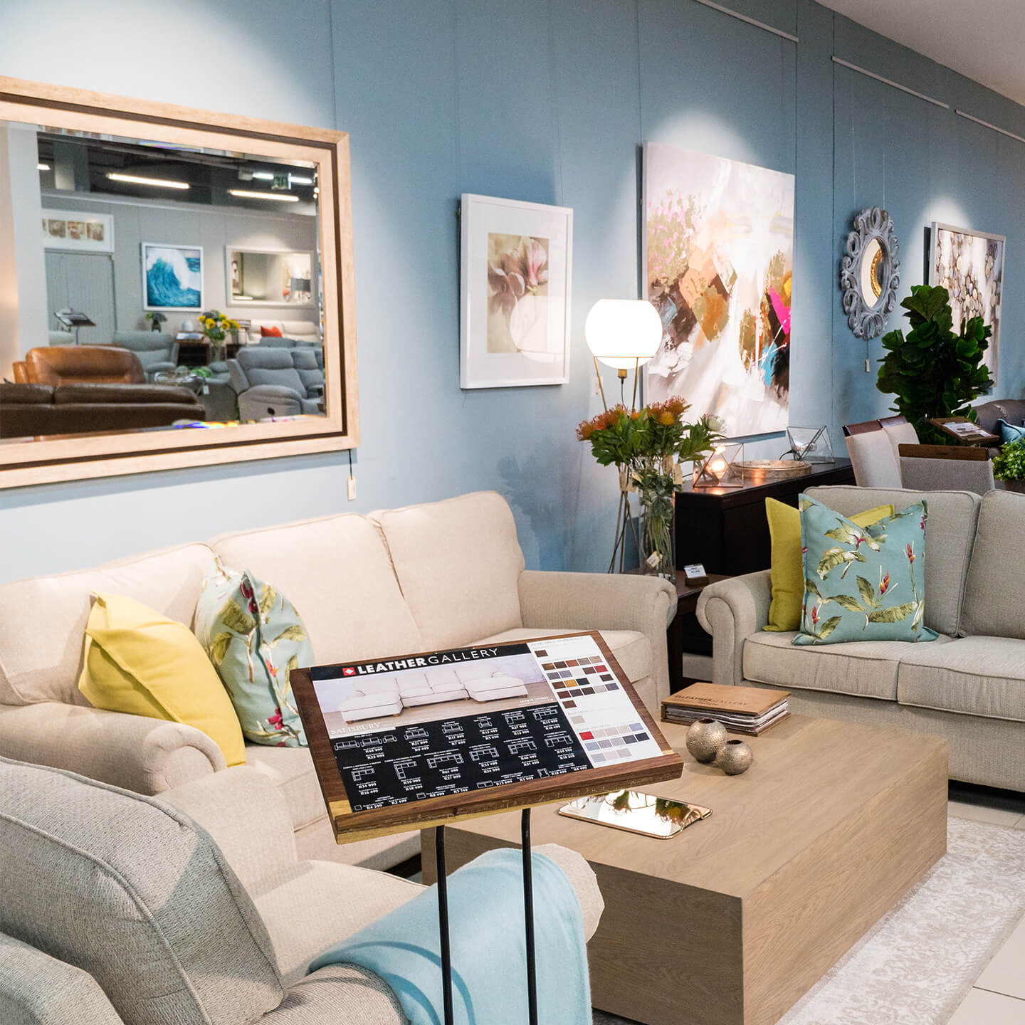 Our Leather Gallery stores are the epitome of luxury and class. Featuring sleek white marble floors and a bright, open atmosphere,our customers feel a sense of calmness when entering our stores. Experience the beauty and comfort of our wide collection of home furniture and décor when browsing through our stores. Our friendly sales assistants are well-informed of the current trends in design and styling, and can assist you in finding the perfect furniture pieces to complete your home.