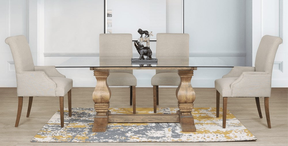 The Belmont Glass 6-Seater Dining Table is perfect for family dining. The glass top is easy to clean and does not absorb or allow any liquids to pass through it, meaning those accidental spills are quick and easy to clean, and the look of the Belmont Glass Dining Table is not affected or ruined. Available in two beautiful colours, Antique Dark Oak and Antique Natural Oak, the Belmont Glass Dining Table perfectly complements the look and aesthetic of any dining room. The Duke dining room chair features beautiful intricate carved wooden detailing that adds to the charm of the traditional style dining room chairs. All of the immaculate wooden detailing featured on the Duke dining room chairs adds authenticity and a warm, cosy feel to your dining space. The timeless design of the Duke Dining Chairs will take your dining room to the next level, and looks picture perfect with any dining room table, whether it has a wooden, glass or marble top.