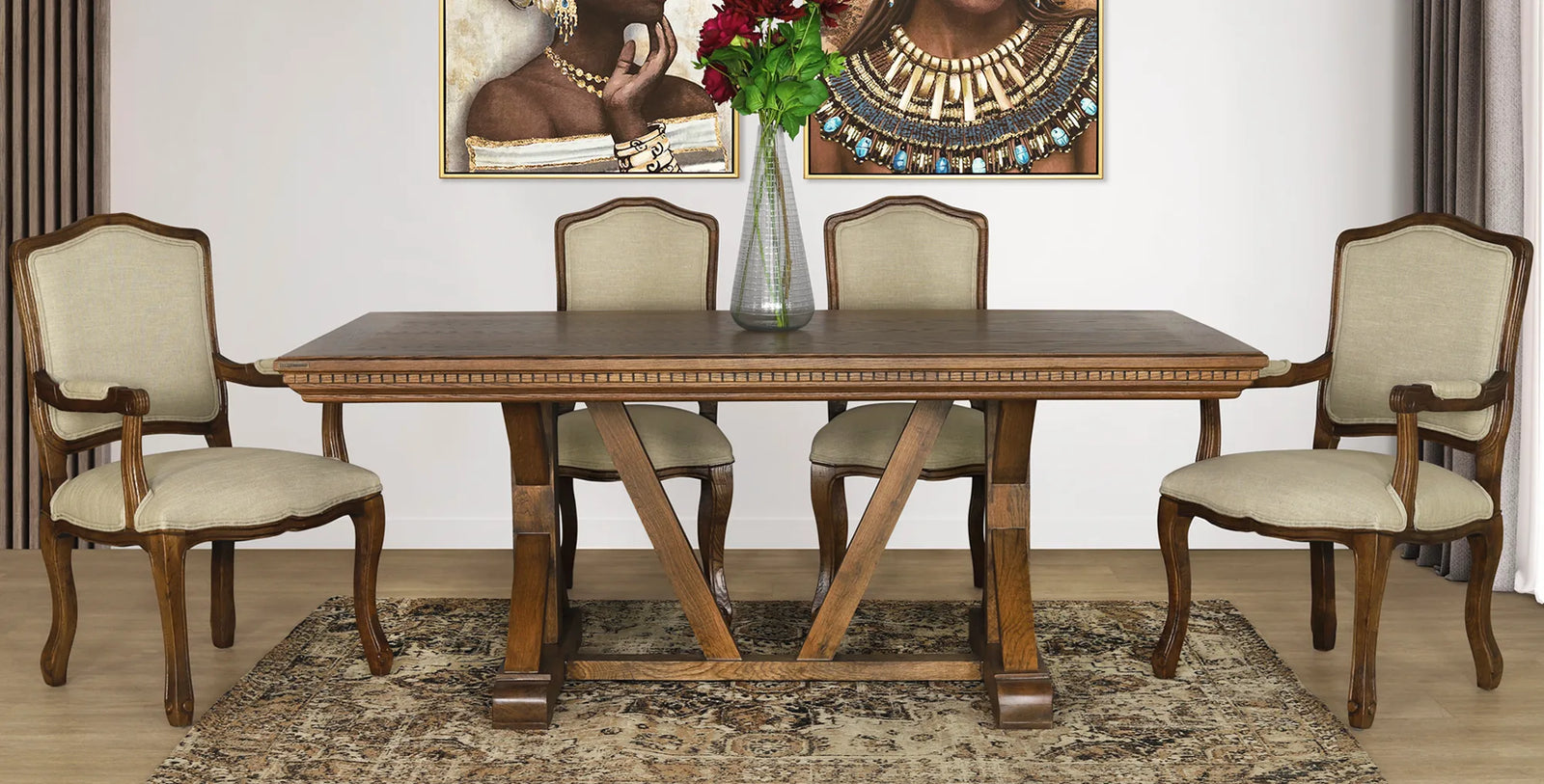 The Berkeley Fluted Wood 6-Seater Dining Table is extremely versatile, whether your home interior leans more towards modern contemporary or classic and timeless, the Berkeley Fluted Wood Dining Table will effortlessly add to the look and feel of your home. The Berkeley Fluted Wood Dining Table base is skillfully crafted from Elmwood. Elmwood is soft hardwood, meaning it is durable and tough but is still softer than other hardwoods. The Duke dining room chair features beautiful intricate carved wooden detailing that adds to the charm of the traditional style dining room chairs. All of the immaculate wooden detailing featured on the Duke dining room chairs adds authenticity and a warm, cosy feel to your dining space. The timeless design of the Duke Dining Chairs will take your dining room to the next level, and looks picture perfect with any dining room table, whether it has a wooden, or glass top .