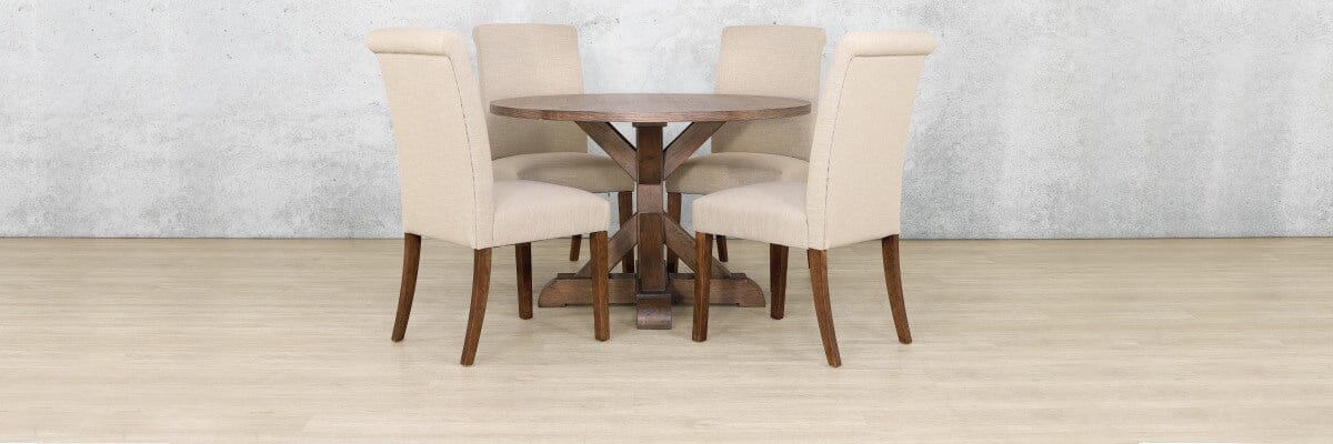 Paired with the Baron dining chairs,available in standard and carver designs - each featuring a sturdy Oakwood frame, gently curved backrests, and soft fabric upholstery—this 4 seater dining room set is designed with style and everyday comfort in mind.