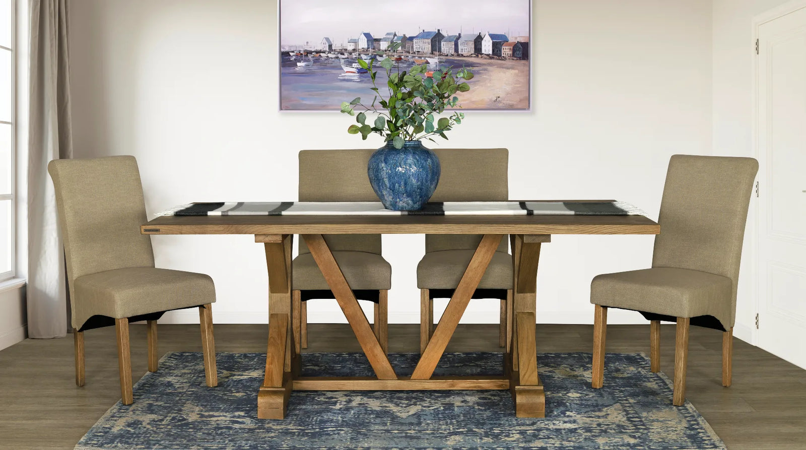 The Berkeley dining table features an X base, this refers to the X shaped legs that it showcases. The X base adds greater stability to this dining table and allows for more legroom when seated at the table. This base is crafted from solid Oak wood.
