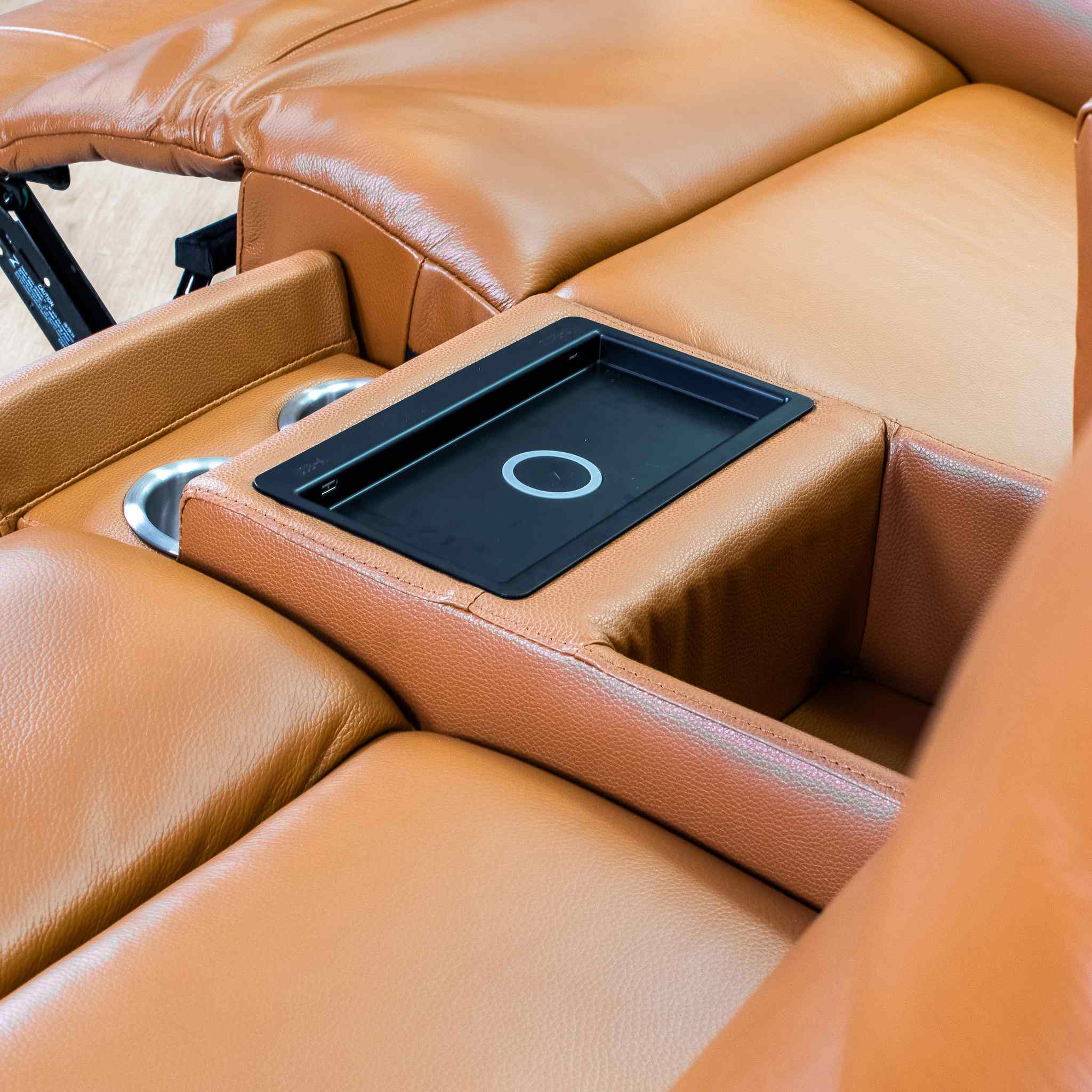 Settle in and unwind. The centre console in the 2-seater blends style and smart living with wireless charging, hidden cup holders, and sleek storage, so your remotes, drinks and downtime essentials are always within reach.
