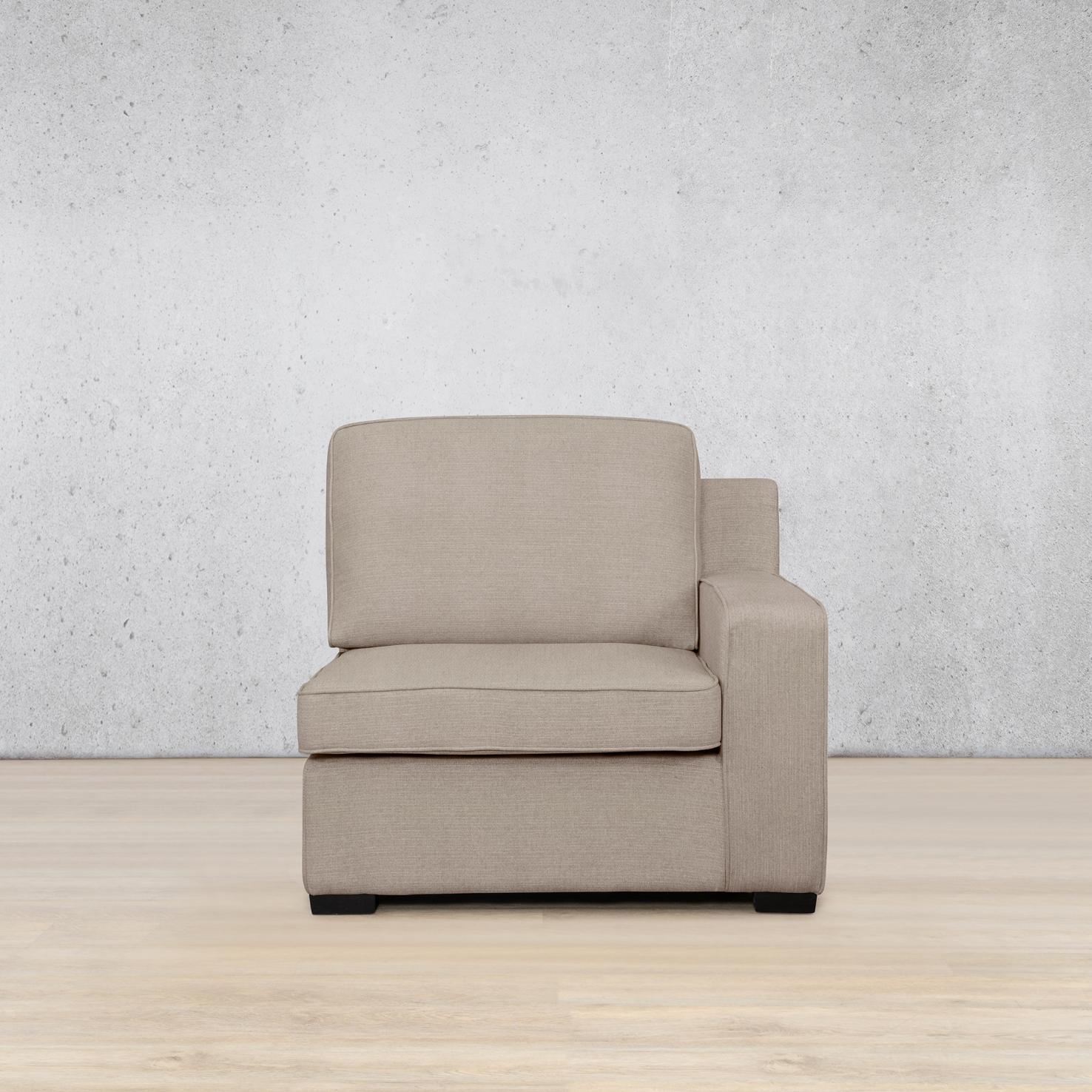 Rome Fabric 1 Seater 1 Arm (RHF) couch in durable polyester upholstery with dual-density foam comfort and weight capacity of 136k g. A stylish modular fabric couch available in a range of fabric colours.