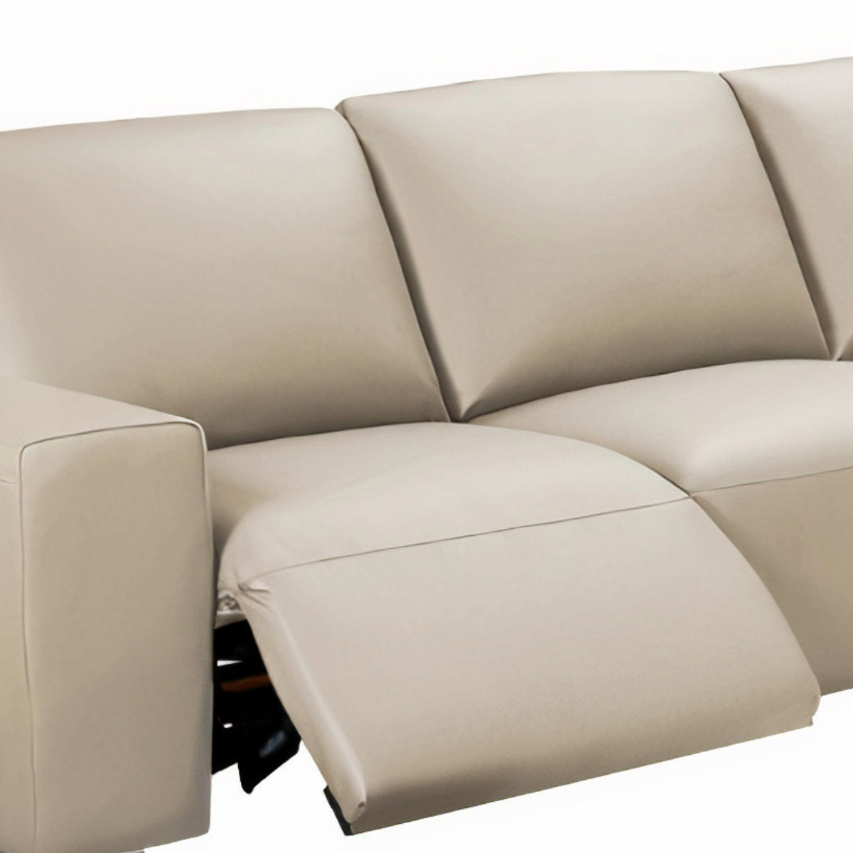 Refined and functional, the Zurich Leather Corner Couch brings contemporary ease and elegance to your living space. Upholstered in smooth, genuine leather uppers with a supple texture and soft Luxe Beige tone, this L-shaped reclining couch invites effortless relaxation.